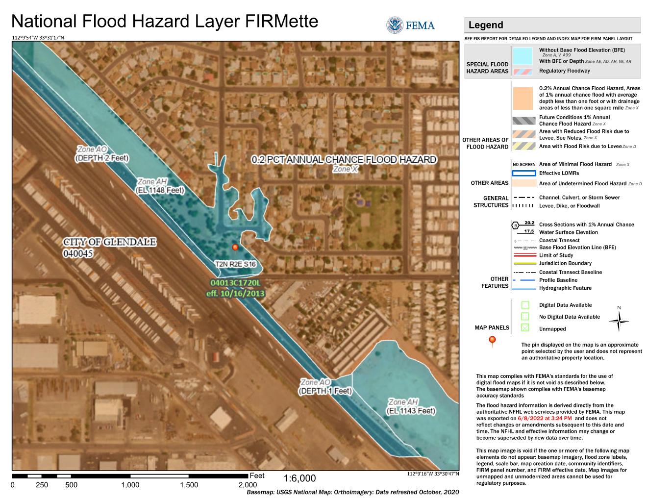 To view the Flood Control District of Maricopa County's Floodplain Viewer select - Floodplain and Elevation Certificate Viewer. Then you can enter your address and see where your property is in relation to the floodplain or if the County has a copy of an Elevation Certificate for your property.